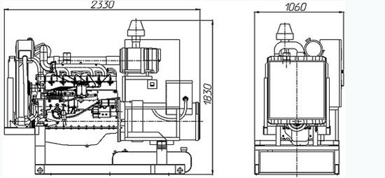 Первичный двигатель ММЗ Д-266.4: дизель, 4-тактный, 6-цилиндровый с рядным расположением цилиндров, с непосредственным впрыском топлива и жидкостным охлаждением, с наддувом, механический регулятор частоты вращения, электромагнит на останов. |